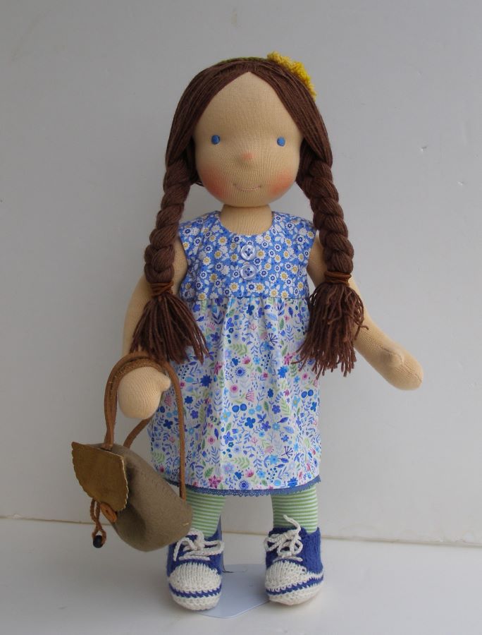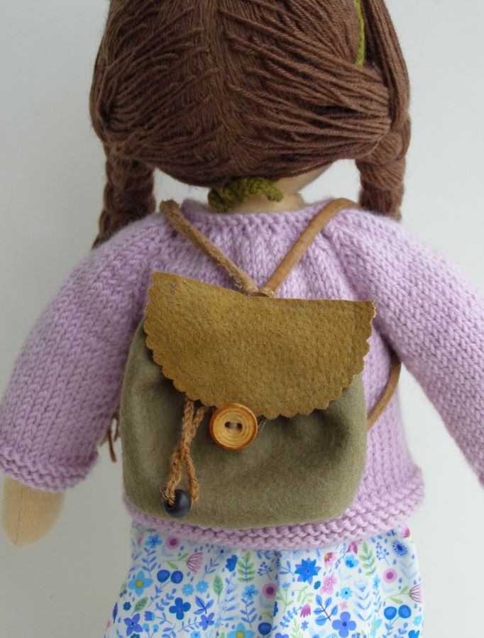 Arnika jest dziewczynką z temperamentem. Ma sukienkę i trampki, bo lubi przygody. Jest gotowa na wspólne pieczenie ciasta i wdrapywanie się na drzewa. Ciekawa jestem co też będzie nosić w swoim małym plecaczku. Zobaczcie lalkę na zdjęciach.