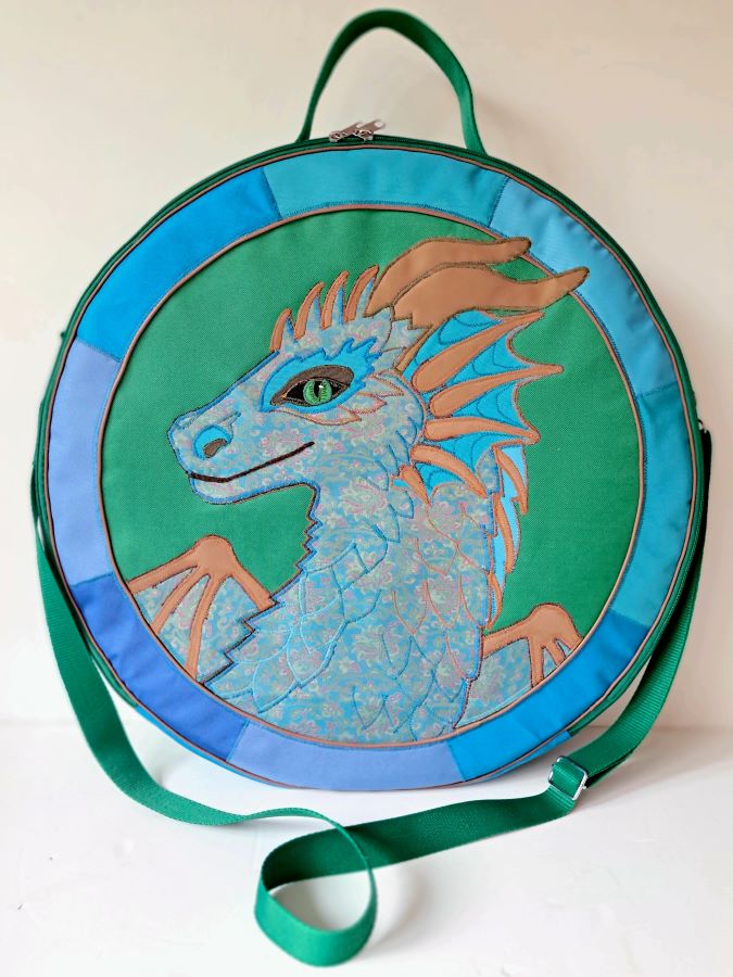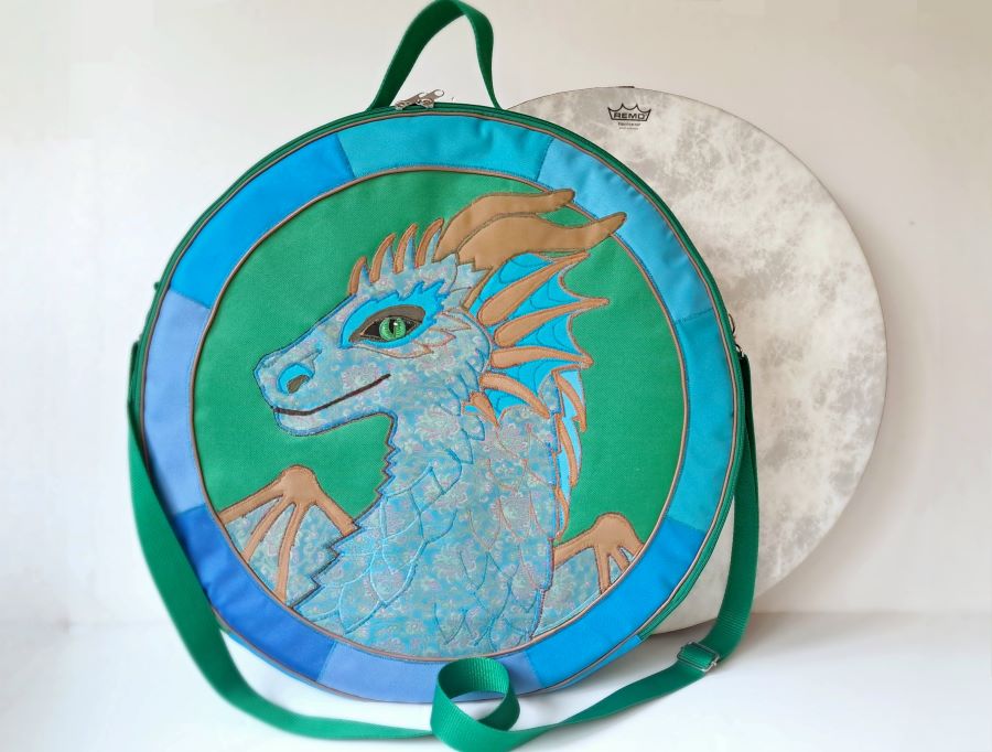 Z mojej pracowni rusza w świat 44-ty pokrowiec na bęben. Tym razem z motywem smoka. Osobiście bardzo lubię te mityczne stworzenia. Może dlatego, że pierwsze siedem lat swojego życia mieszkałam na ulicy Smoczej. W każdym razie, pomimo tego, że żyję na Ziemi ponad pół wieku (co wydaje się wystarczającym okresem czasu by spoważnieć), nadal lubię słuchać opowieści o smokach i ludziach z nimi związanych. Tak więc praca nad tym pokrowcem była wyjątkową przyjemnością.