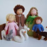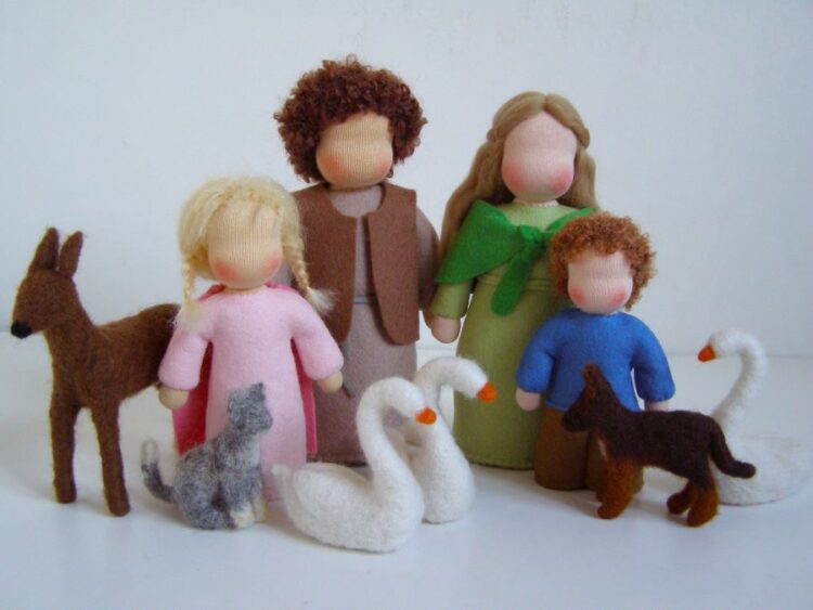 Nie wiem jak u Was lecz w Warszawie widać już pierwsze oznaki zbliżającej się jesieni. Kasztany spadają z drzew (mam już całą kolekcję na parapecie), jarzębina przyciąga wzrok czerwonymi koralami, dostałam też pierwszy bukiet kolorowych liści! Jesienny nastrój z zewnątrz postanowiłam więc przenieść do swojej pracowni – z przepaścistych pudeł wyciągnęłam brązowe, czerwone i złotawe tkaniny w listki, jeżyki, sówki i muchomorki. I tak choć pierwotnie miałam zupełnie inny zamysł, powstała Sylwia – pierwsza jesienna lalka. Dziewczynka ma bardzo jasną karnację skóry, długie blond włoski i niebieskie oczy. Ponieważ Sylwia pojedzie do przedszkola, projektując jej ubranka starałam się, by były one wesołe i łatwo zdejmowane. Sukienka z długim rękawem, rozpina się cała z tyłu. Wczuwając się z nową aurę, dodałam do niej długie skarpetki, rudy sweterek (który zrobiła mama mojej koleżanki) oraz ciepłą czapkę i szalik (te zrobiłam już sama). Ach mówię Wam, cała feeria przepięknych barw na jednej lalce!