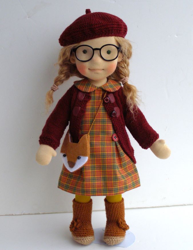 Poznajcie jesienną Ulę. Wspominałam już wcześniej, że są lalki, które powstają szybko. Praca nad nimi przebiega w płynności. Ruch za ruchem, etap po etapie – bez dłuższego zastanawiania się, odkładania do rana by spojrzeć na coś świeżym okiem, dodatkowych poprawek. Pierwsza wyciągnięta tkanina na ubranka jest tą z której szyję sukienkę, w nocy przychodzi sen na temat koloru sweterka. Mam odczucie, jakby lalka bardzo chciała pojawić się na tym świecie. I oto jest. Stoi na moim biurku i uśmiecha się delikatnie, patrząc przez swoje okulary. Jest gotowa do drogi i rozpoczęcia swojego lalkowego życia. U mnie „tylko” i „aż” powstała. Ciekawa jestem dalszych losów moich prac. Czasami dostaję listy z takimi opisami, zwłaszcza przy okazji zamówień na dodatkowe ubranka. I ku swojej wielkiej radości, dostaję też zapytania o wykroje do samodzielnego szycia. W pedagogice waldorfskiej zamiast kolejnych zabawek tworzy się lub kupuje coś dla tych, które już są. Lalka może dostać ubranka na dany sezon, łóżeczko, wózek, domek. Lalka ma być dzieckiem naszego dziecka, zachętą do uczenia się opiekuńczości, uwagi i dbałości. Trudno być czułą mamusią dla dwudziestu lalek, dokładnie tak samo jak trudno być taką mamą dla tylu dzieci. Wiem, że w dobie dobrobytu w jakim żyjemy, nie jest to ani łatwe ani modne. Ale dla mnie ma sens. Czy dla Was też?